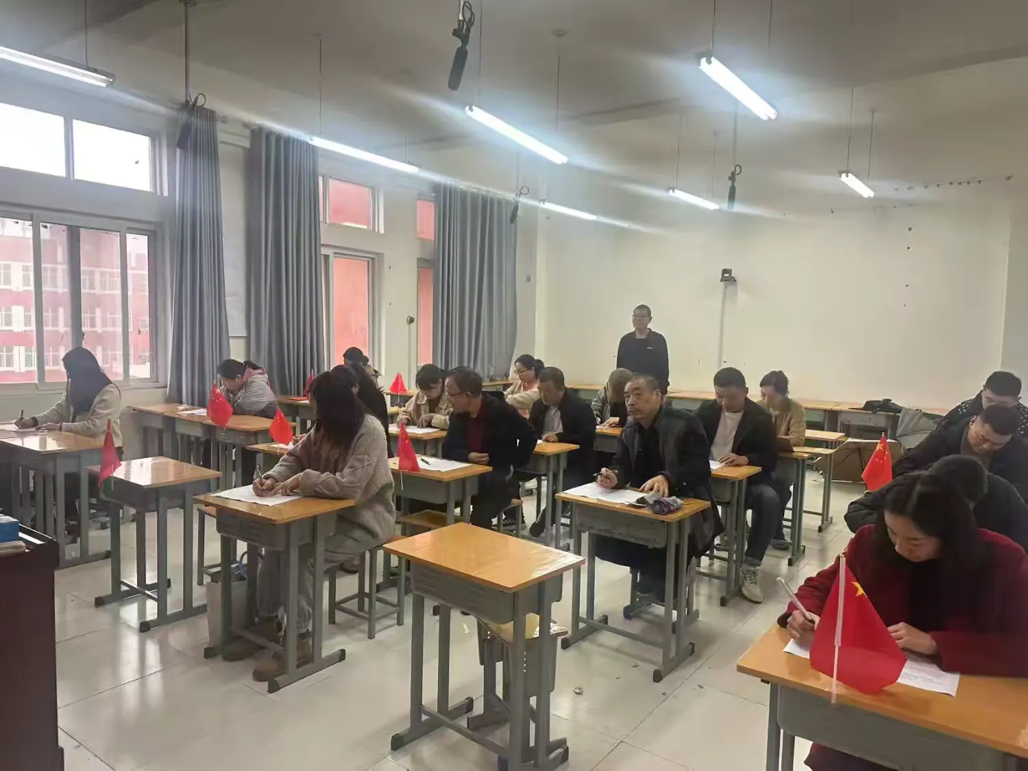 笔试现场,参考教职工沉着答题,专注思考专业理论知识。考场上秩序井然,展现出良好的职业素养。